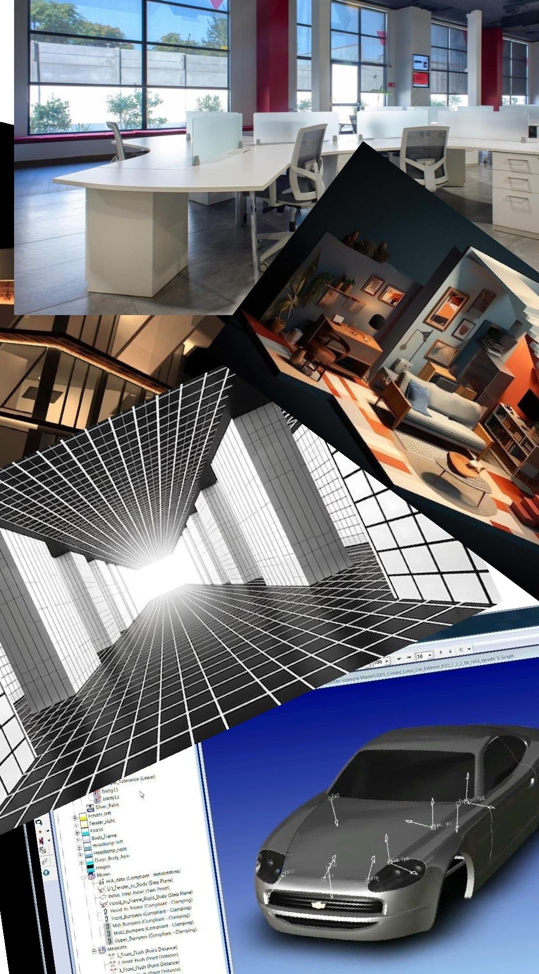 Simulaciones de materiales, iluminación y comportamiento espacial.